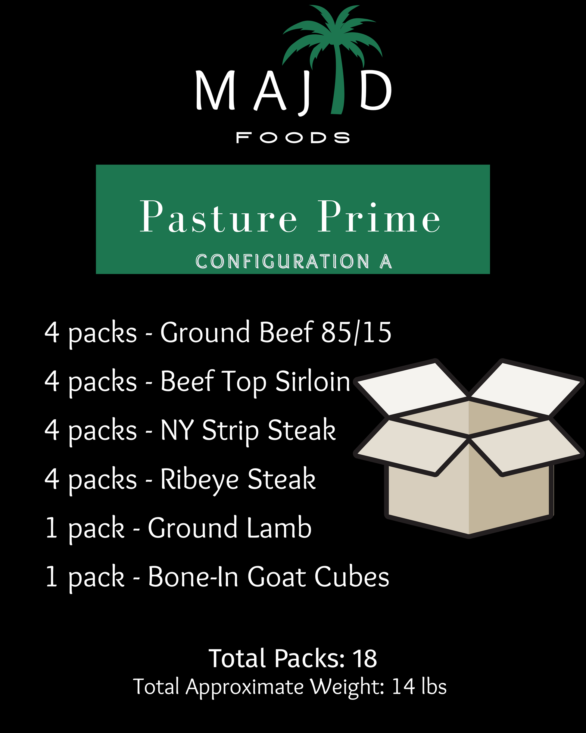 Experience the ease of our expertly assembled Pasture Prime box, bringing premium red meats directly to your doorstep. Ideal for any occasion, this selection features organic options, grass-fed beef, free-range goat, and high-quality steaks, offering a variety that delights every palate. Looking for a straightforward and convenient way to enjoy meat? Our thoughtfully prepared Pasture Prime box is designed to simplify your meals. Choose from four unique options to find the perfect fit for you and your family. Curated boxes are always a better value than buying items individually.