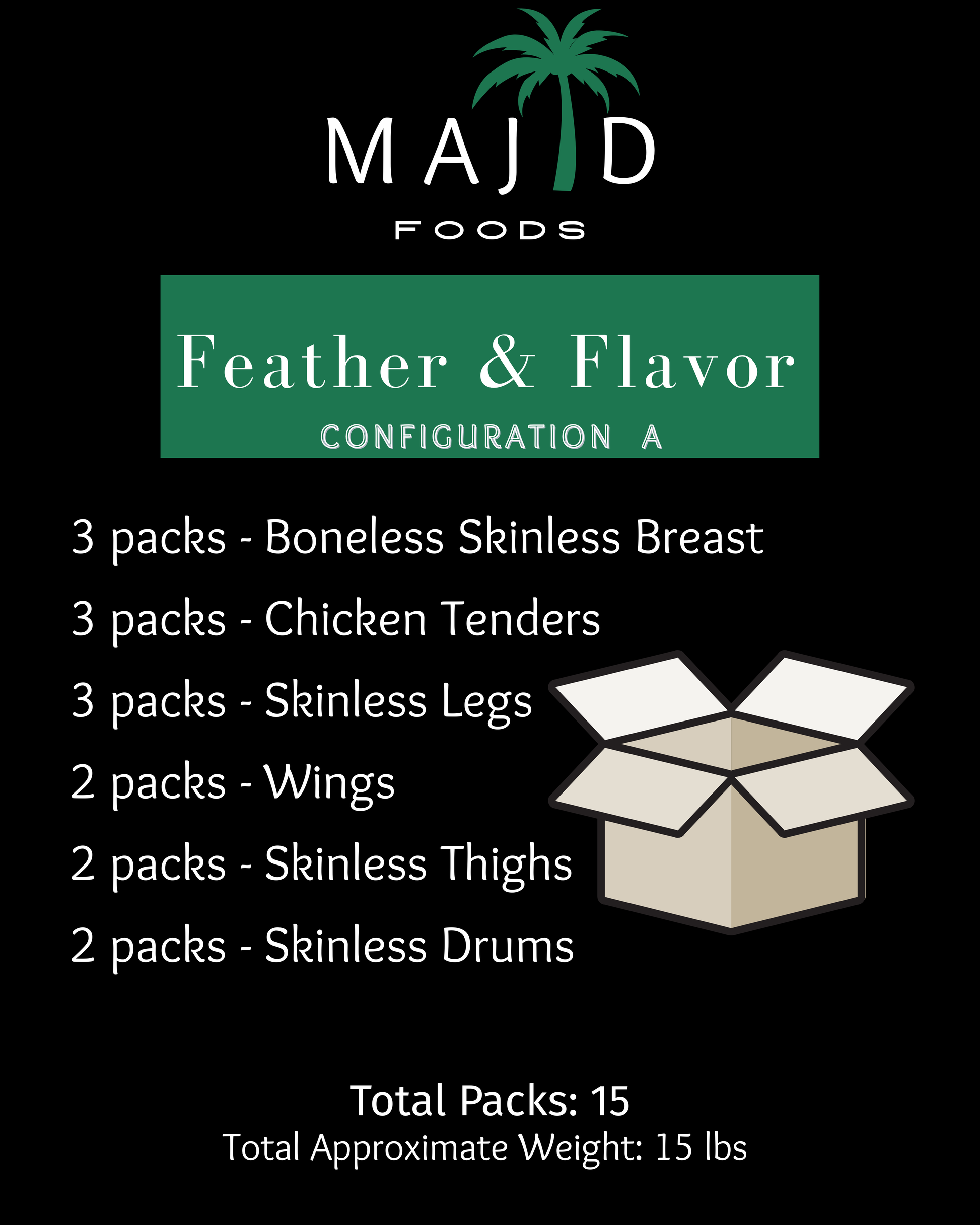 Craving a simple and convenient meat delivery? Try our carefully crafted Feather & Flavor box! Our expertly packaged selections are made to make mealtime effortless. With four distinct options available, you can select the ideal choice for you and your loved ones. Curated boxes are always a better value than buying items individually.